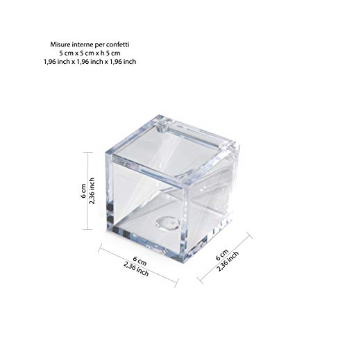 Omada Design Scatolina Portaconfetti in Plexiglass, 24 pezzi, Cubo formato 6 x 6 x 6 cm, Bomboniere trasparenti, idea regalo per cerimonie, con Coperchio, Colore Trasparente