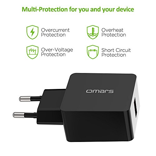 Omars Caricabatterie USB [Quick Charge 3.0] 18W per Samsung Galaxy S8 / S8 + / Note 8, LG G5 / G6, Nexus 5X / 6P, HTC 10, iPhone X / 8/8 Plus, iPad PRO/Air, unità da Viaggio, ECC. (18W, Nero)