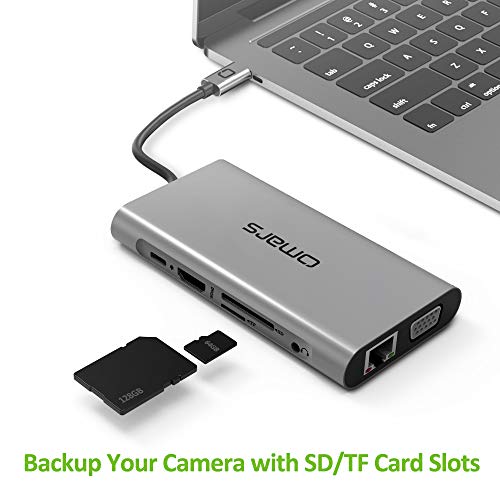 Omars 10 in 1 Hub USB C Docking Station, con HDMI & VGA, RJ45 Gigabit Ethernet, 100W Ricarica PD, 3 x USB 3.0, Lettore SD/TF, 3.5mm Jack, Adattatore MacBook PRO, iPad PRO, XPS etc.