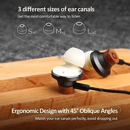 Leggera e confortevole: 45° Angolo di disegno inclinato imballato con 3 paia di tappi di silicone (S / M / L). Gli auricolari si adattano perfettamente nel vostro canale uditivo, senza rumori molesti e scudo dall'esterno in modo efficiente. Allo stesso tempo, non consentono suoni musicali fuoriuscire