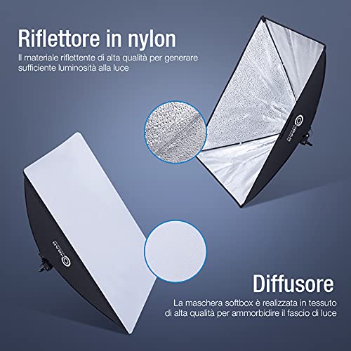 OMBAR Softbox - Set Dotografico per Studio Fotografico, 50 x 70 cm, Professionale, con 135 W, 5500 K, Lampada Diurna E27 e Borsa per il Trasporto per Ritratti da Studio, Foto di Moda