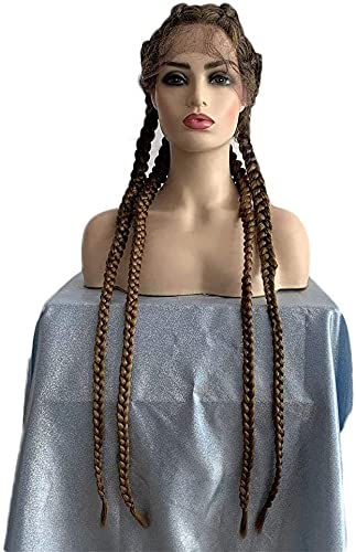 Omber biondo scuro trecce pizzo anteriore parrucca mix marrone ornrow 4 Twist intrecciato parrucca con capelli bambino Xpression treccia sintetico parrucca per le donne indossare 30 pollici