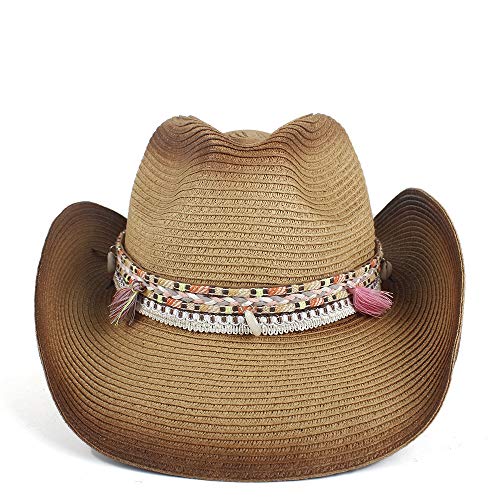 Ombra Lady Tassel Estate Sombrero occidentale Hombre Lifeguard Cappelli Cappello di paglia di paglia naturale donne tessute a mano Cowboy cappelli per Elegante ( Colore: Cachi, Dimensione: 56-58 )