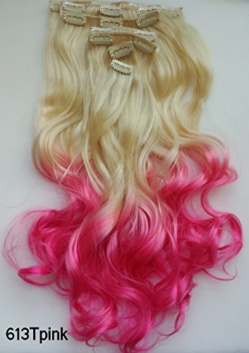 61 cm (60 CM) 130 g ombre color Curly clip in Hair extensions 2-tones 7 pezzo/set per una testa piena