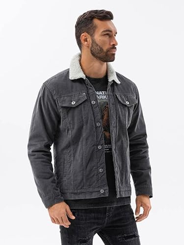 Ombre Giacca Sherpa da Uomo Velluto a Coste Jeans Mezza Stagione Transizione Senza Cappuccio Giubbotto Ragazzo Bomber Rider Trucker Basic Fit con Tasche S-XXL (S, Velluto Grafite)