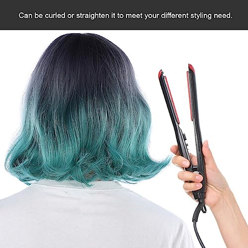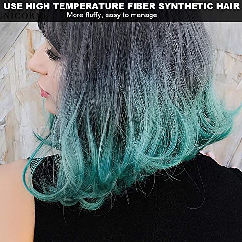 Ombre Grigio Sfumato Verde Parrucche Per Le Donne, Parrucche Donna Corta Parrucca Verde, Parrucca Corta Ondulata Riccia Con Frangetta Parrucche Sintetiche Resistenti Al