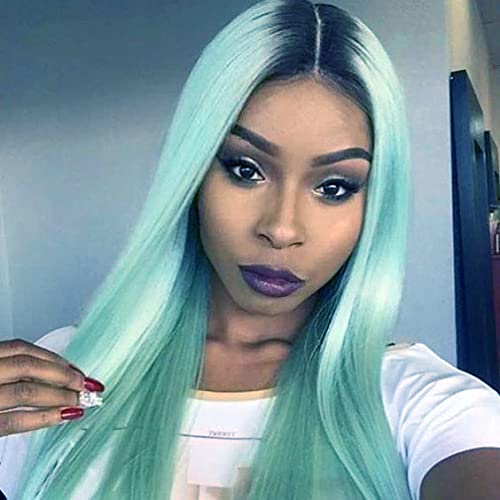 Ombre Parrucca Verde Lunga Parrucca Dritta Parrucca Capelli Sintetici per Donne Cosplay Halloween Party Dark Rooted