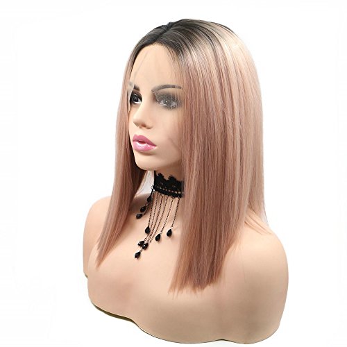Ombre Dark Roots to Dirty Pink Bob Parrucche frontali in pizzo sintetico resistente al calore per le donne Ricambio Parrucche Bob corte rosa sporche Lunghezza spalla Drag Queen parrucche