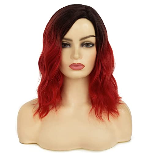 Colore: ombré rosso parrucca. Parrucca corta ondulata, perfetta per carnevale, feste a tema, Halloween, costume e uso quotidiano.