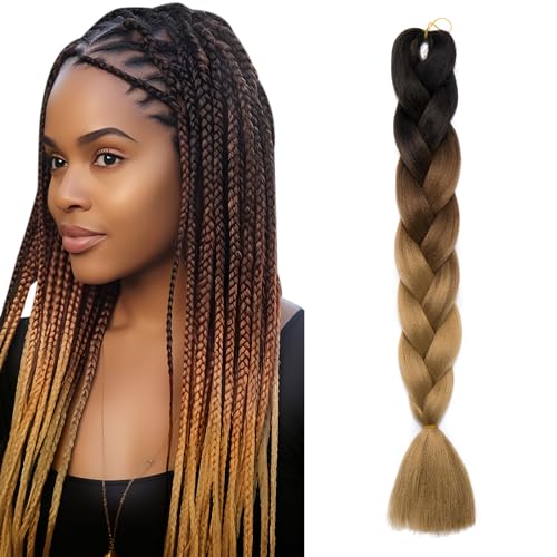 Ombre 4 Tones Estensione dei capelli Treccine Extension Capelli per Treccia Extension Trecce Lunghe Braiding Hair 1 Bundles Dal nero scuro al marrone chiaro al biondo cenere