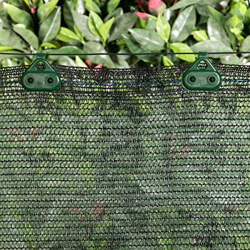 Rete Ombra “Ombreggiante” di colore verde scuro con bordatura nera, asole / occhielli rinforzati, ideale per la copertura di recinzioni, frangivento, serre.