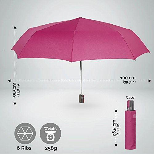 Ombrello mini con apertura Apri e Chiudi automatica, antivento pieghevole Perletti. Leggero e resistente con bacchette rinforzate in fibra di vetro. Ombrello da viaggio da donna (Fucsia)