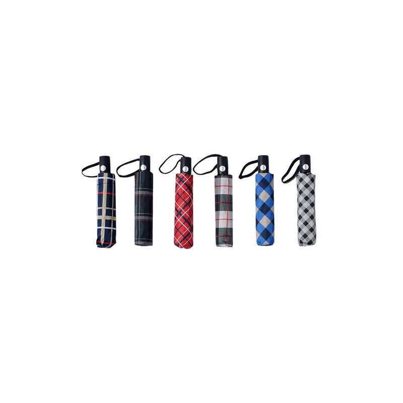 Tessuto pongee. impugnatura in plastica. con custodia. colorazioni assortite.fantasia scozzese