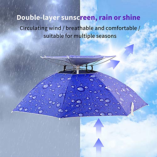 Ombrello Cappello, ZoneYan Cappello Doppio Ombrello, Ombrello Cappello Sole, Ombrello a Cappello con Fascia Elastica, per Proteggere da Sole e Pioggia, Adatto per Pesca all'aperto, Campeggio, Golf, Pa