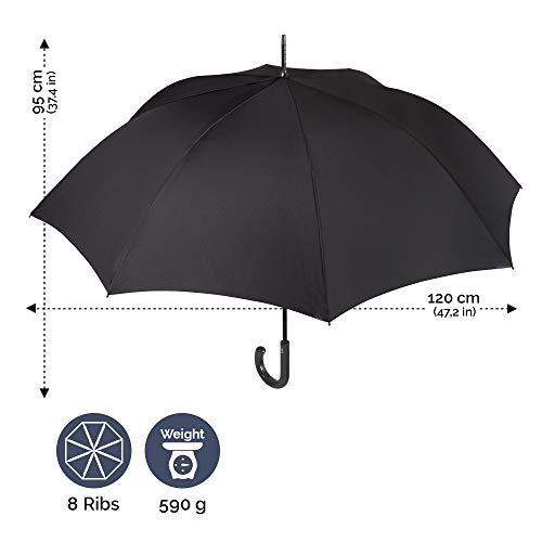 Ombrello Nero Golf Classico Uomo - Ombrello Lungo Automatico Tinta Unita - Grande Antivento e Resistente in Fibra di Vetro - PFC FREE - Diametro 120 cm - Perletti Technology (Nero)