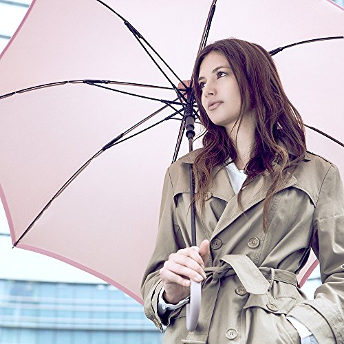Ombrello donna lungo apertura automatica - Ombrello antivento e resistente Perletti Technology - Tessuto ad asciugatura rapida - Diametro 112 cm - Tinta unita rosa chiaro con bordino tortora