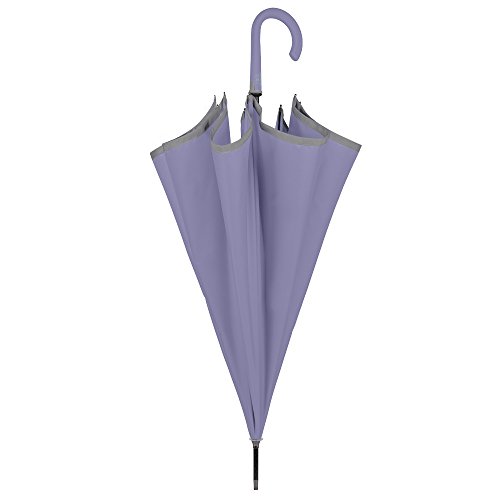 Ombrello donna lungo apertura automatica - Ombrello antivento e resistente Perletti Technology - Tessuto ad asciugatura rapida - Diametro 112 cm - Tinta unita lilla con bordino grigio