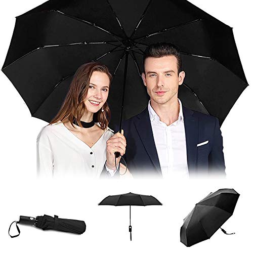Ombrello,HEIHEI Automatico Apri e Chiudi Compatto Antivento Ombrelli 10 Stecche Rinforzate Buona Qualità e Durevole Grande Ombrello Pieghevole-NERO