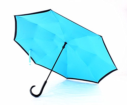 Ombrello invertito, double face, a doppio strato, impermeabile, anti-vento, facile da trasportare, dimensioni da ombrello da golf, di alta qualità, ombrello da viaggio con gancio per auto, Blue 1