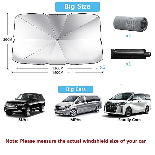 【Adatta a tutti i modelli】Con una dimensione di 140 * 80 cm, il ombrello parasole auto parabrezza è adatto alla maggior parte dei modelli di SUV. Prima di acquistare un parasole per parabrezza, ti preghiamo di misurare il tuo parabrezza per assicurarti che si adatti in modo ottimale e offra una protezione affidabile.