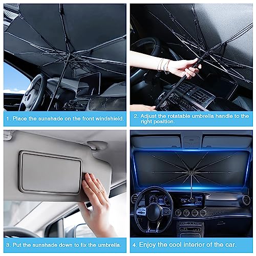 【Massima riflessione solare】Il nostro parasole ombrello per parabrezza auto riflette fino al 99% dei dannosi raggi UV e del calore solare. Mantieni la tua auto fresca e proteggi contemporaneamente cruscotto e sedili dallo sbiadimento e dai danni.