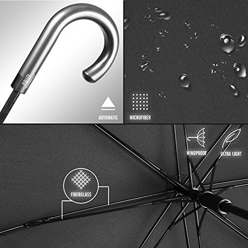 Ombrello Uomo Golf lungo Perletti Technology - Antivento, Ultra Resistente e Grande - Tessuto tinta unita idrorepellente con trattamento TEFLON - Diametro 120 cm - Apertura automatica - Nero