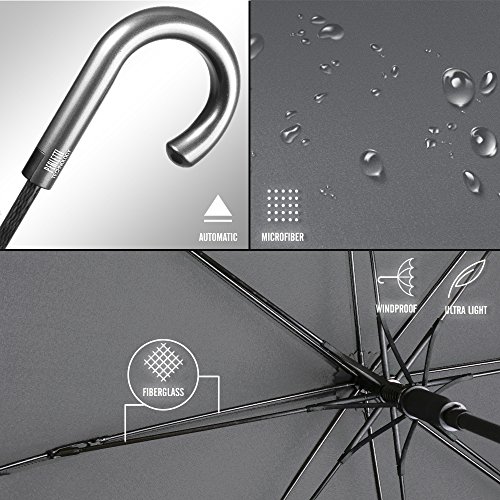 Ombrello Uomo Golf lungo Perletti Technology - Antivento, Ultraresistente e Grande - Tessuto tinta unita con trattamento TEFLON - Diametro 120 cm - Apertura automatica - Grigio