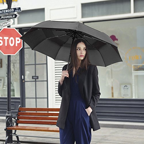 Ombrello Pieghevole antivento Vanwalk,Automatico Apri e Chiudi, Compatto Antivento Ombrello per esterno da viaggio, 9 stecche rinforzate, 190T Fabric Sturdy (Nero)