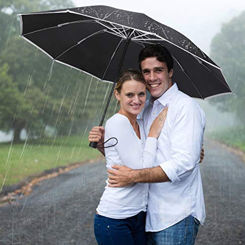 Ombrello Pieghevole Automatico, Antivento Ombrello Portatile Resistenza Compatto Pioggia Ombrello da Viaggio per Uomo e Donna, 10 Costole e Strisce Riflettenti Notturne per la Sicurezza, Nero