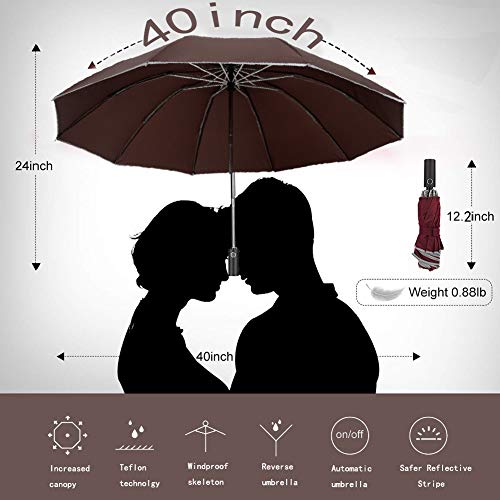 Ombrello Pieghevole Automatico Antivento Ombrello Portatile Resistenza Compatto Pioggia Ombrello Viaggio Con Sicura Striscia Riflettente