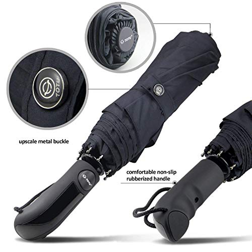 TOTU Ombrello Pieghevole Automatico con 8 Stecche Rinforzate/Ombrello da Viaggio Antivento"Infrangibile"/Compatto Testato 60 Mph Durabilità Testata 6000 Volte (Nero)