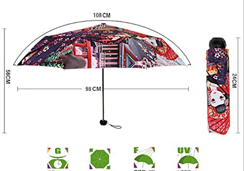YJZQ Ombrello portatile pieghevole automatico, telescopico, leggero, compatto, da viaggio, antivento, antipioggia e protezione UV al 99% con rivestimento nero anti-UV, UPF 50+, Sakura, diameter-108cm
