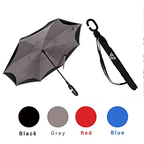mentre gli altri antivento retro pieghevole a doppio strato inverted ombrelli Break dopo un paio di usi, danneggiato con un manico scollata né si piega molto facilmente, l' ombrello pieghevole vitchelo reversibile ha una robusta asta in alluminio che migliora la sua robustezza, 8 aste in fibra di vetro, e una doppia calotta progettato per resistere a venti forti. Questo significa che è possibile ottenere dentro e fuori qualsiasi porta o auto senza bagnarsi, ed evitare attizz. passanti in raggi della testa con un ombrello quando si chiude il vostro ombrello.