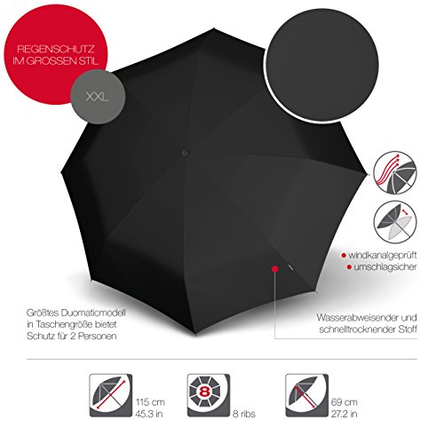 Questo ombrello è il modello Duomatic tascabile più grande e ideale per due persone grazie al suo ampio top.