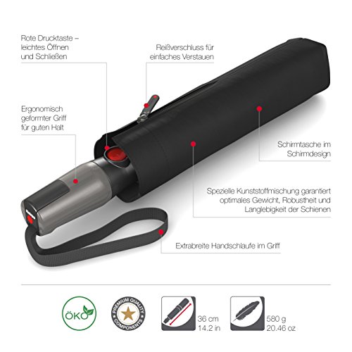 La consegna include: Ombrello tascabile Knirps T.400 Duomatic Uni (manico con passante per le mani) e copertura di protezione con zip in tinta