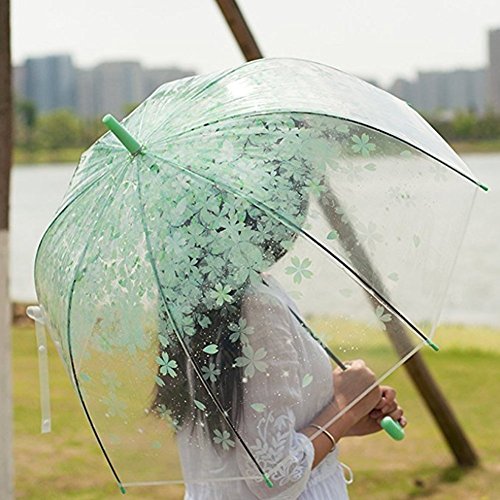 Ombrello Trasparente Cupola Fiori di Ciliegia Ombrello Semi Automatico, Colore Romantico e Carino (Verde)