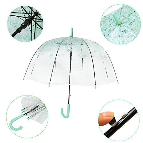 Ombrello trasparente robusto: costruito con tetto robusto, telaio in acciaio e 8 nervature in acciaio, è perfetto per proteggervi da cattive giornate di pioggia, questo diventerà il vostro ombrello preferito. Graziosa forma a cupola con colore Trim vi rallegrerà!