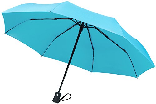 Ombrello da viaggio, protegge dal vento fino ai 96,6 km/h, con chiusura e apertura automatica, compatto, non si rompe se si rovescia, Turquoise (Turchese) - TU-200