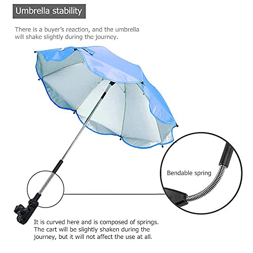 ☀ 【Adatto a tutti i passeggini】: la gamma della clip regolabile inferiore è di 18-30 mm, il che rende l'ombrellone del passeggino adatto a qualsiasi passeggino, carrozzina, passeggino o passeggino.