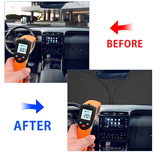 Mantiene il veicolo fresco: gli esperimenti hanno dimostrato che l'uso di questo parasole può ridurre la temperatura dell'auto di 10-25 gradi. Mantenete la temperatura interna bassa per proteggere i materiali dallo smontaggio e ridurre le emissioni.