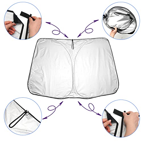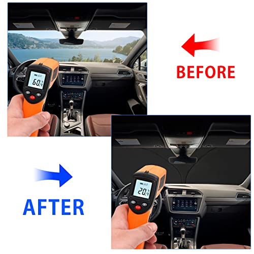 Mantiene il veicolo fresco: gli esperimenti hanno dimostrato che l'uso di questo parasole può ridurre la temperatura dell'auto di 10-25 gradi. Mantenete la temperatura interna bassa per proteggere i materiali dallo smontaggio e ridurre le emissioni.