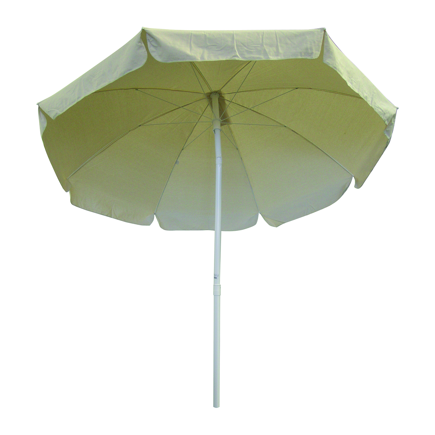 Struttura in acciaio colore bianco, 8 stecche. Telo in cotone da 200 g/m². Adatto per essere collocato al centro dei tavoli nello spazio predisposto. Ideale per balconi e piccoli terrazzi, ombrellone classico adatto a tutti gli spazi esterni. Tessuto con trattamento anti UV. Facile da utilizzare e leggero da trasportare