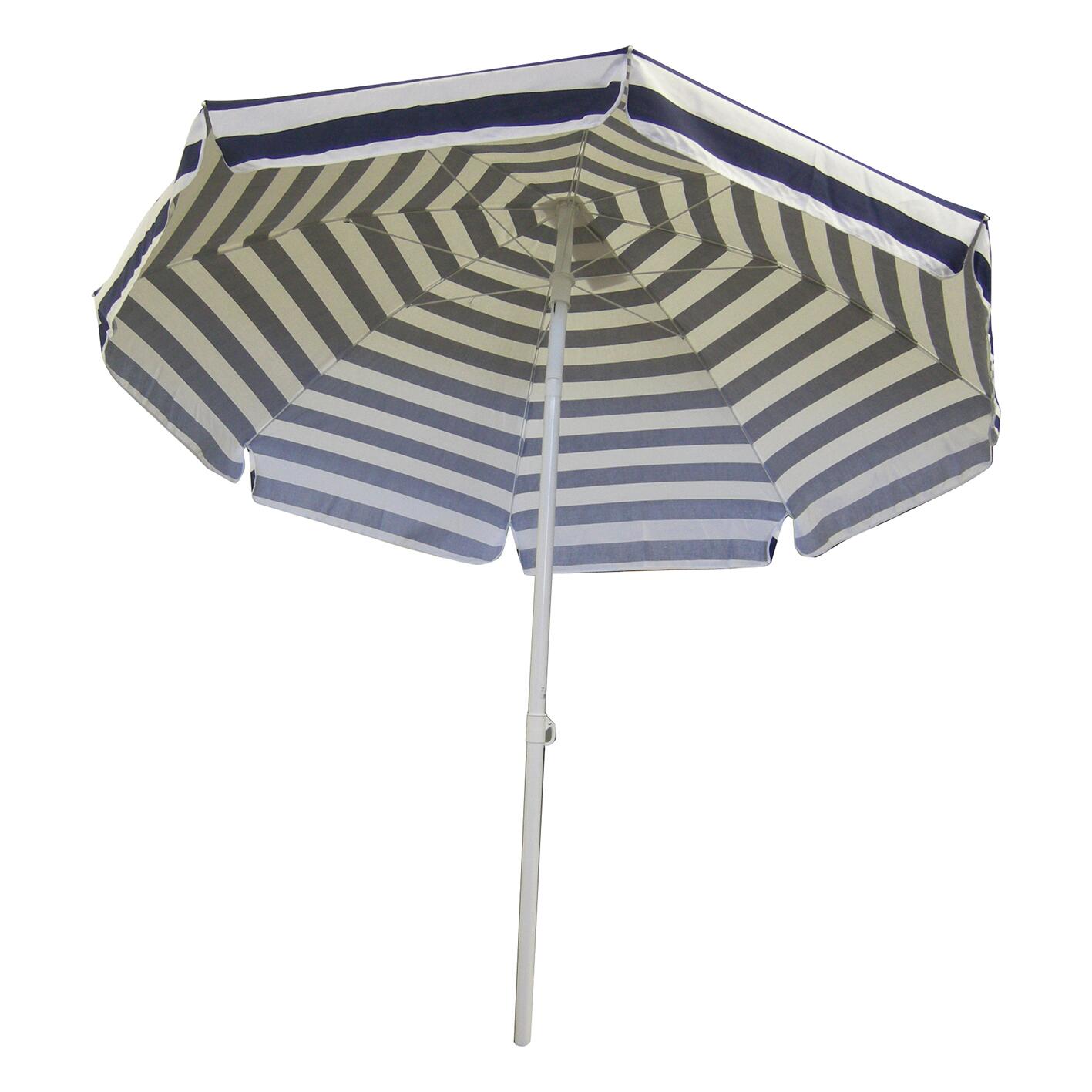 Struttura in acciaio colore bianco, 8 stecche. Telo in cotone da 200 g/m². Adatto per essere collocato al centro dei tavoli nello spazio predisposto. Ideale per balconi e piccoli terrazzi, ombrellone classico adatto a tutti gli spazi esterni. Tessuto con trattamento anti UV. Facile da utilizzare e leggero da trasportare. Grazie al palo snodabile protegge dal sole tutto il giorno