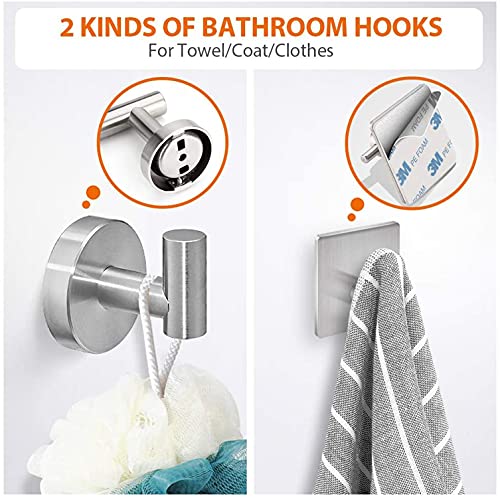 【Perfetta Combinazione di 6 Pezzi】 - Questa perfetta combinazione di set di portasciugamani non lascerà i prodotti inattivi. Il set di accessori per il bagno comprende: portasciugamani da 16 pollici, porta carta igienica, 1 ganci per accappatoio multifunzionali,3 Gancio adesivo. Sono adatti per decorazioni di vario stile.