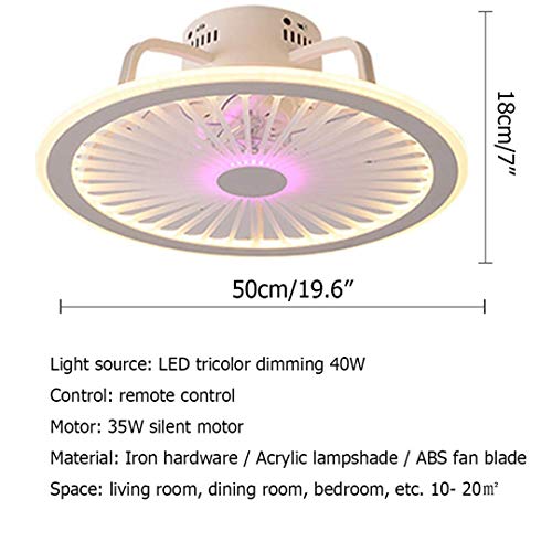 OMGPFR Ventilatore a soffitto con illuminazione App e Telecomando Ultra sottile 18CM LED Lampada da soffitto Silenzioso 40W dimmerabile plafoniere per soggiorno Camera da letto Illuminazione,Rosa