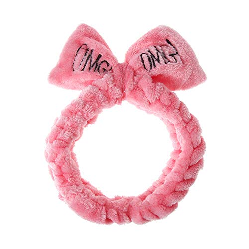OMICE - Fascia per capelli da donna, in pile corallo, con fiocco, con lettere OMG, fascia per capelli per il viso (rosa scuro)