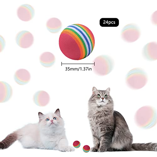 OMIGA 24 Pezzi Pallina Gatto Giochi per Gatti Interattivi Arcobaleno Palline Spugna Schiuma per Indoor Outdoor Pet Cats Puppy Sports Training Esercizio Divertimento 3.5 CM