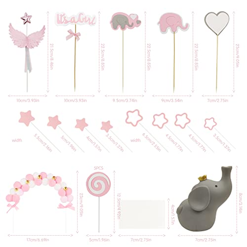 Contenuto Della Confezione: Topper per torta con elefante include 2 topper con elefante, 1 elefante 3D grigio, 1 ali d'angelo rosa con fiocco, 1 striscione This Is a Girl, 1 fiocco, 5 lecca-lecca rosa, 8 stelle rosa, 1 grande decorazione a cuore bianco, 1 x cartoncino bianco, la quantità è sufficiente per le tue esigenze di decorazione.