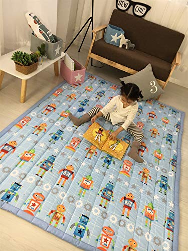 Ommda Tappeto Bambini Gioco Imbottito Interattivo Cotone Gattonamento Antifreddo Alto Spessore Antiscivolo Tatami Rettangolare Tappeto Bambini Cameretta Lavabile,robot,140x195cm