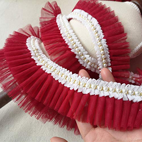 Bene Omnia Orlo in pizzo arruffato, tulle pieghettato con perline, per realizzare bambole, torte nuziali, abiti con tulle, 6 cm x 1,8 m, 12 rosso